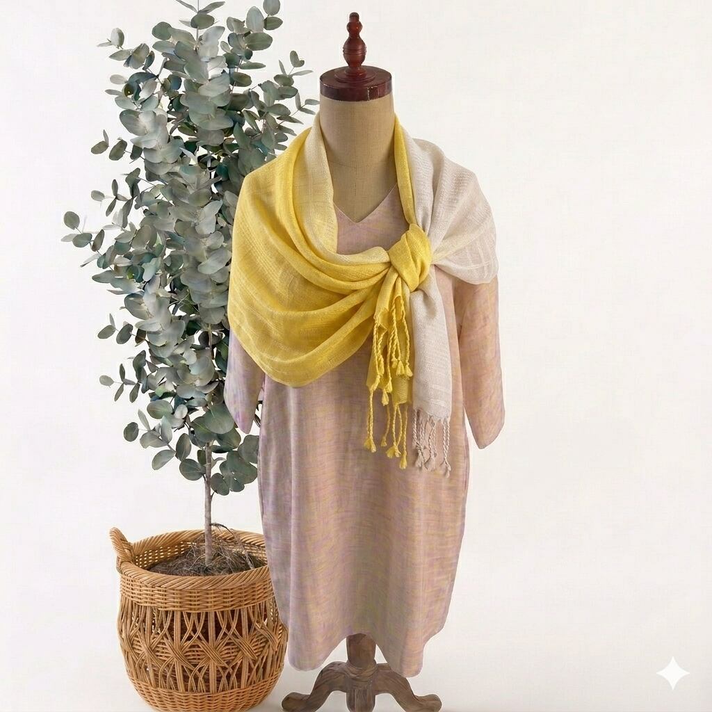 やわらかく空気をまとうような、幅広のシルクストール。