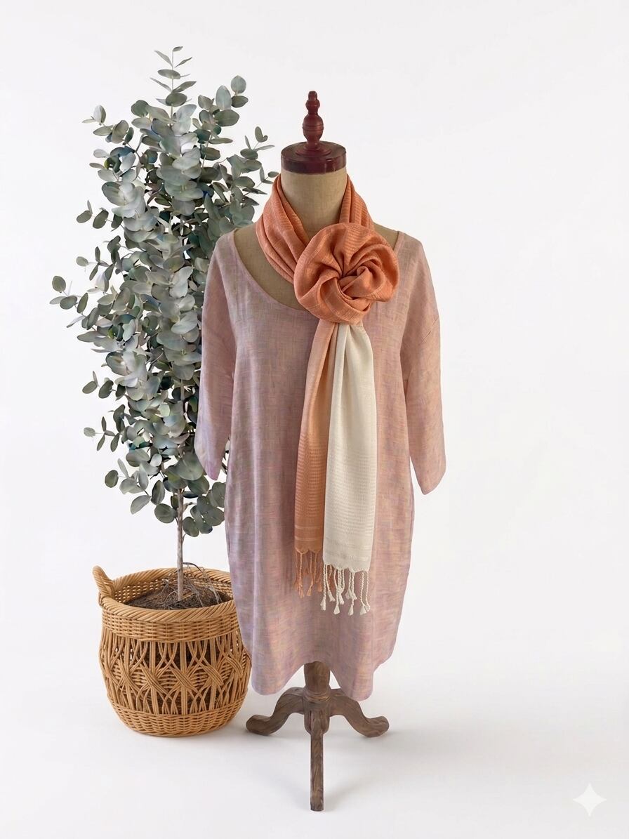 薄手でしなやかな質感は、首元にふんわり巻くだけで表情が変わり、肩にかけたり、羽織のように使ったりとアレンジも自在。